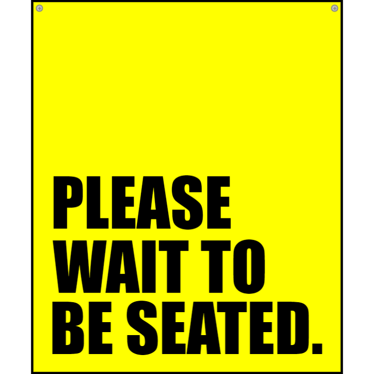 Yellow please wait to be seated sign