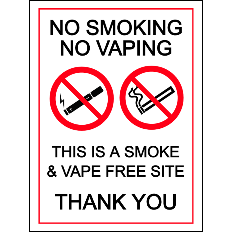 No smoking, no vaping - this is a smoke & vape free site - portrait sign